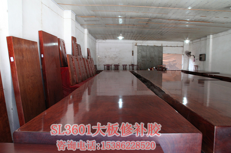 因為木材上面有的縫隙較小,所以要選用滲透力好的膠來修補它,但是現(xiàn)在有很多大板加工廠用的是502類似的水性膠,這種膠雖然固化時間短,但是耐老化情況不好,對于一顆成長了上百年歷史的原木來說要體現(xiàn)它的價值當然需要每一件都用好的材料來輔助它加工成為精品、藝術(shù)品,所以強烈給大家推薦SL3601透明裂縫膠這款膠顏色是完全透明的可以根據(jù)木材的顏色添加不同顏色的色粉;流動性非常好,特別適合細小裂縫的修補和灌注修補;