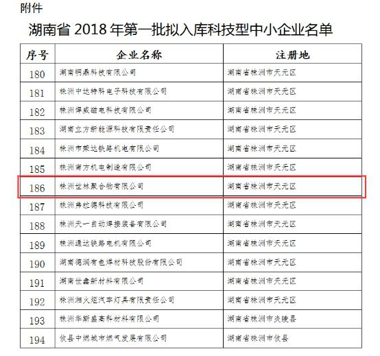 世林膠業(yè)入選湖南省2018年批入庫(kù)科技型中小企業(yè)